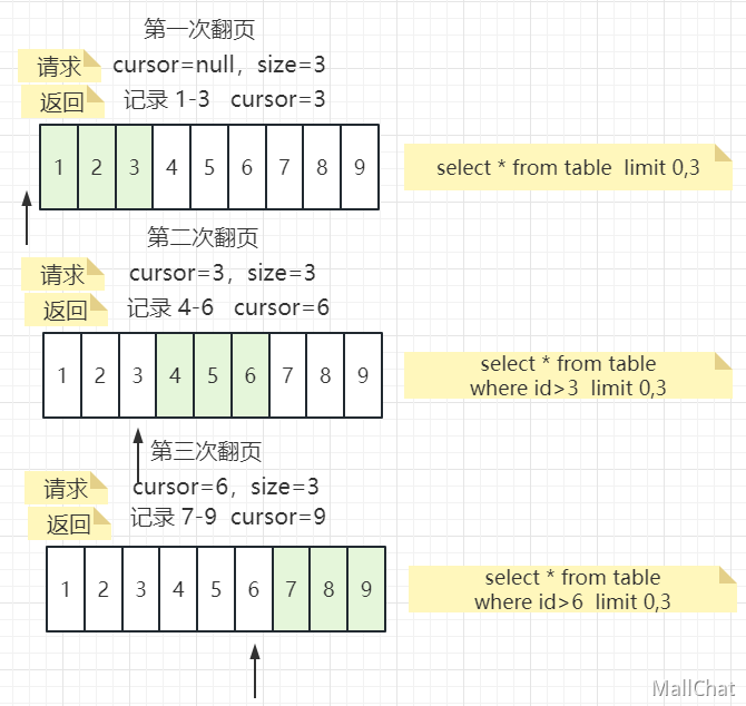 前端之前传的pageNo字段改成了cursor字段。cursor是上一次查询结果的位置,作为下一次查询的游标,由后端返回,具体交互可看抹茶的前端后是如何协作的