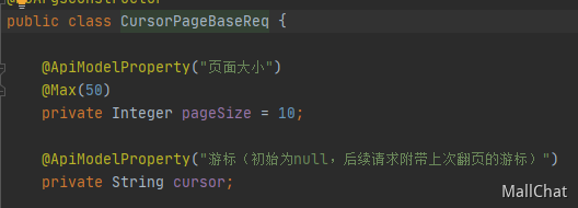 这个是一个完整的游标翻页的写法,也是我们消息列表的游标翻页的写法。